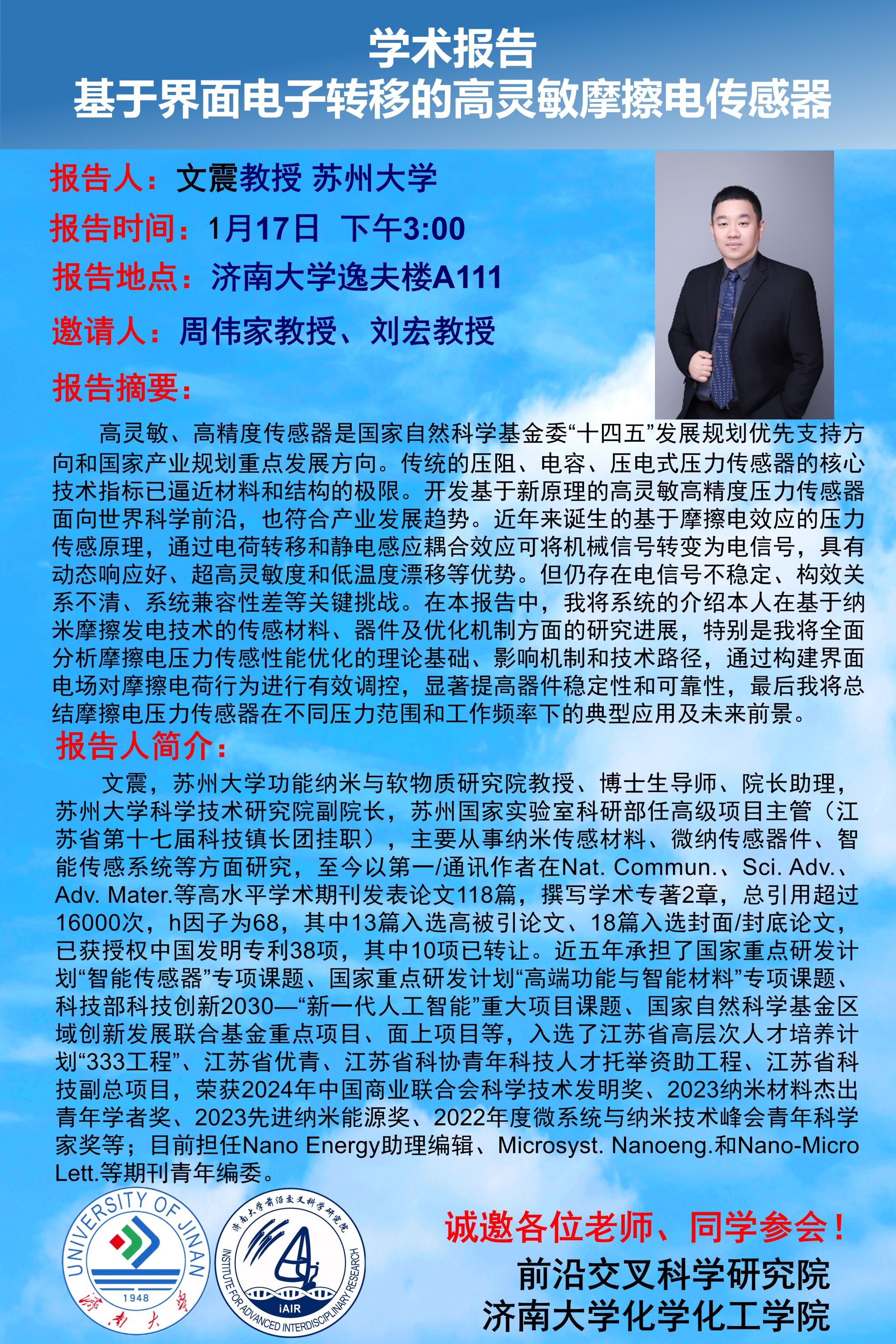 学术报告丨基于界面电子转移的高灵敏摩擦电传感器