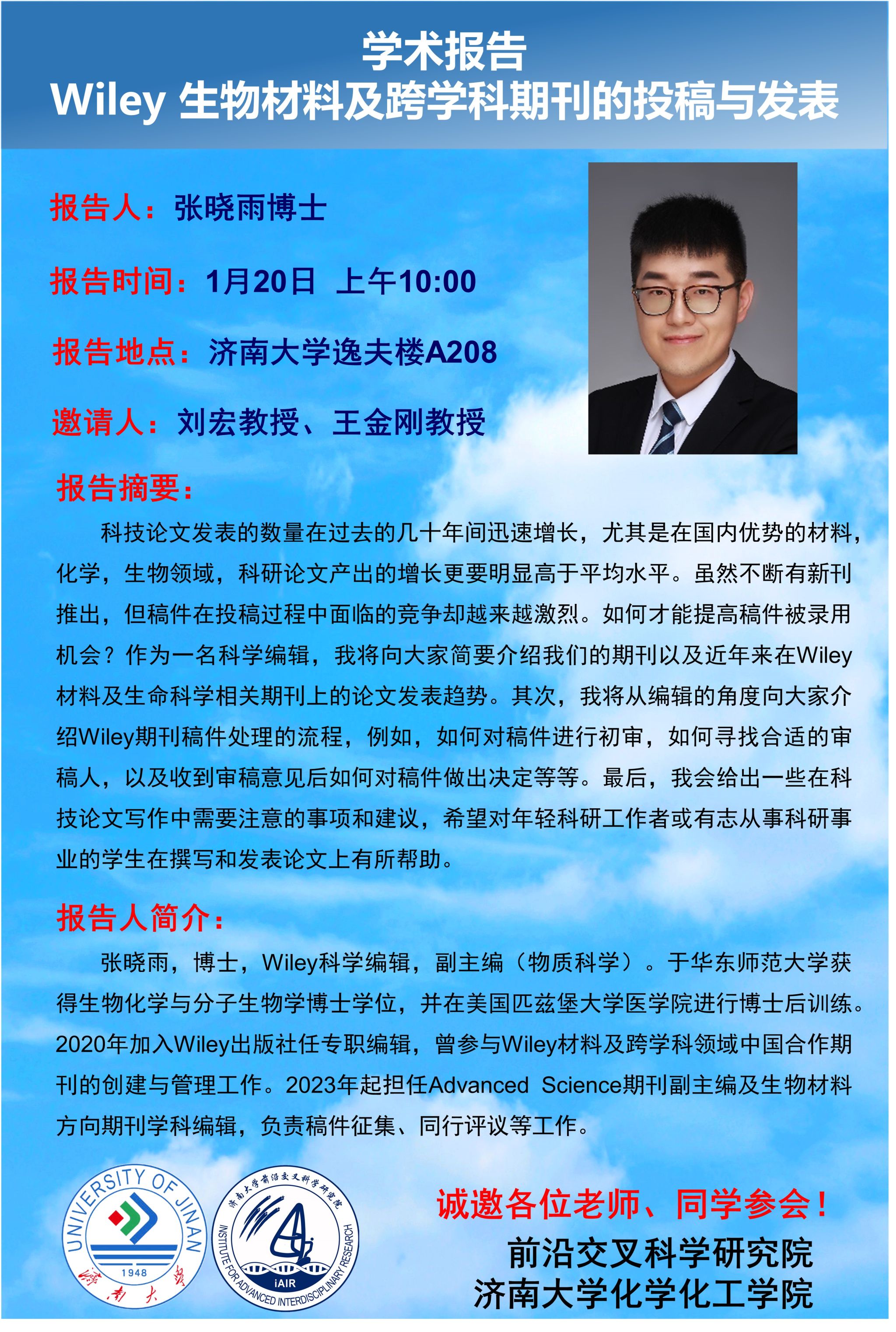 学术报告丨Wiley 生物材料及跨学科期刊的投稿与发表