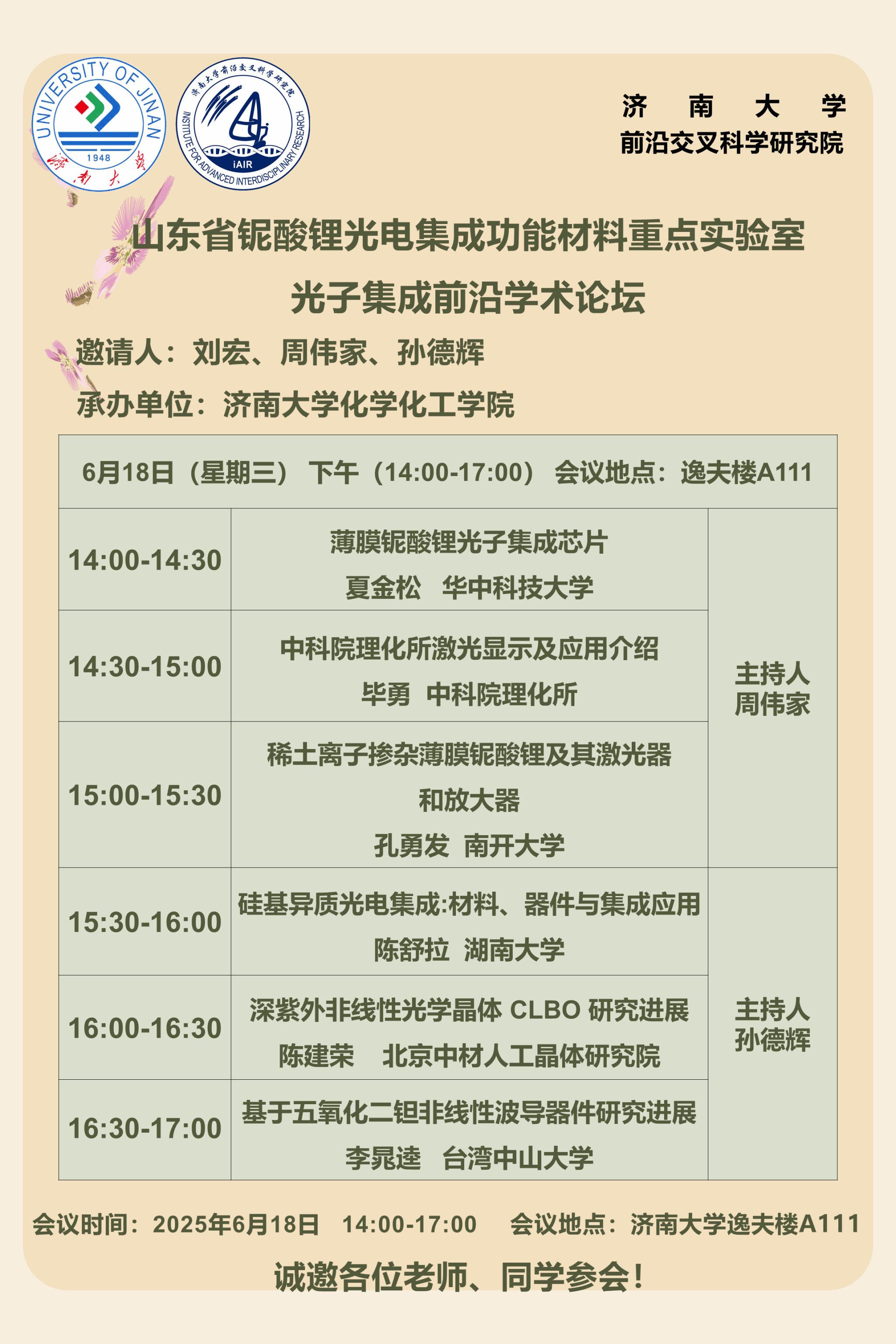 山东省铌酸锂光电集成功能材料重点实验室光子集成前沿学术论坛