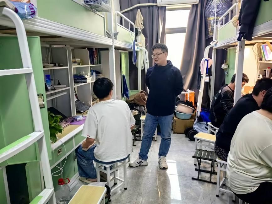 此次公寓走访并未止步于卫生安全检查,更融入了“暖心谈心”的育人温度。辅导员们以宿舍为单位,与学生围坐交流,详细询问大家近期的学习状态、备考进度及生活难题。针对考研学生的焦虑情绪,老师们分享时间管理技巧与心理调节方法;对于实习就业的学生,结合学院校企合作资源提供岗位信息与求职建议;面对大一新生的适应难题,耐心解答专业学习、社团选择等疑问,引导其快速融入大学生活。