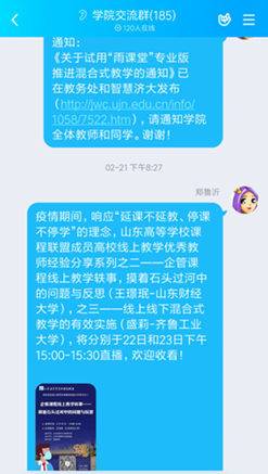 2)协助授课教师和学生建立授课群,不放弃任何一个学生,为线上教学提供全方位保障。
