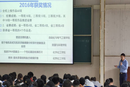 为了激发同学们的科创热情,鼓励同学们积极参加科创竞赛,milan米兰官网于11月17日在milan米兰官网星硕阶梯教室举行了科创赛事新生入学教育大会,此次活动有幸邀请到资深科创项目指导老师张彦老师担任主讲人,milan米兰官网团委书记、2020级新生辅导员李健慧老师、2020级新生辅导员魏爱凤老师以及2020级全体同学参加了此次活动。