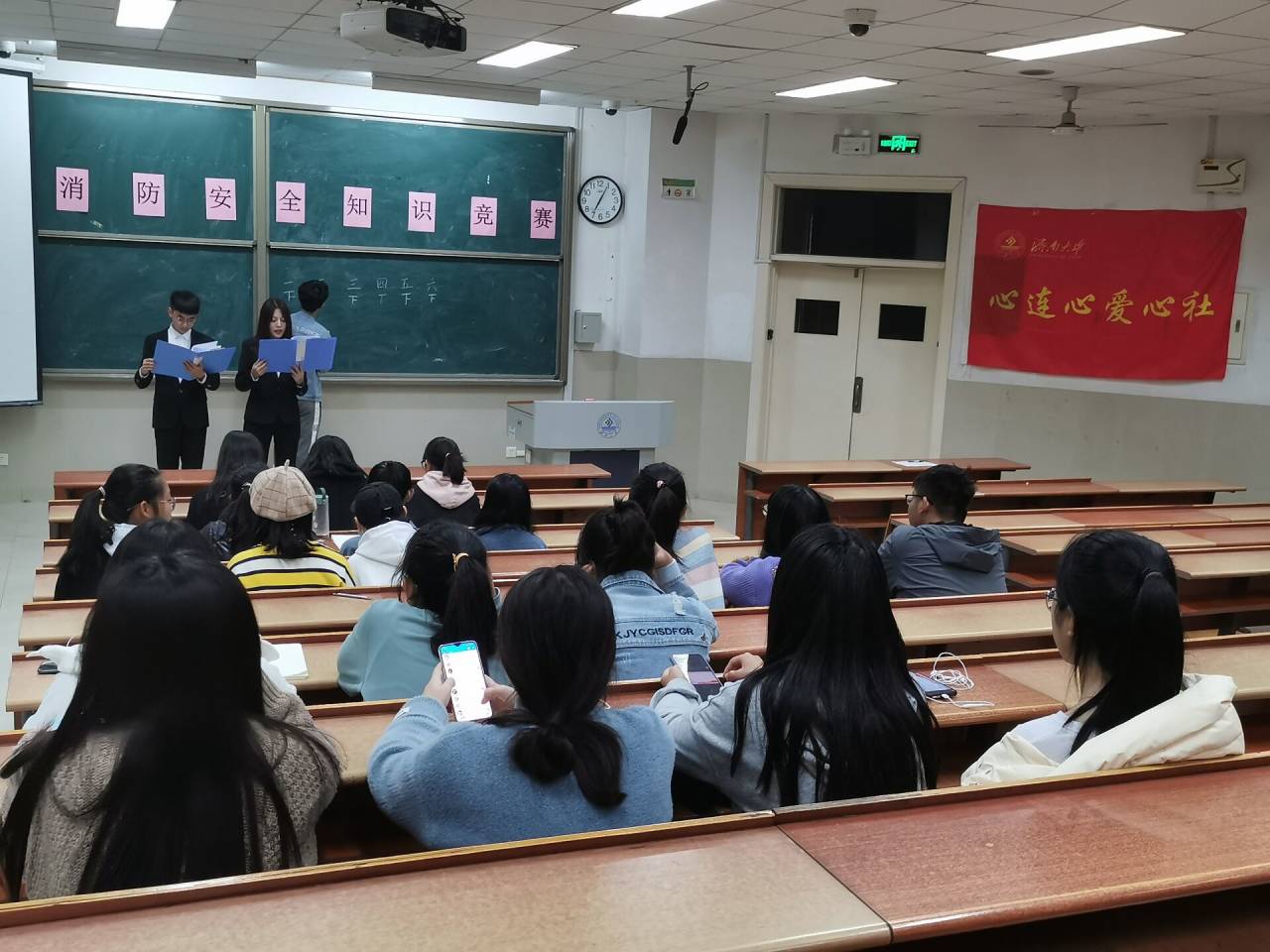 秋风送爽,红叶飞扬,milan米兰官网也迎来了消防安全月。消防安全是大学工作中的重中之重,为进一步强化大学生的消防安全意识,丰富消防安全知识,提高消防自护能力,并进行消防安全宣传教育,milan米兰官网心连心爱心社于11月14日晚7点至9点30分在第十一教学楼1301教室举行“消防知识入我心,安全校园共营造”消防安全知识竞赛活动,旨在以知识竞赛的形式让学生了解和掌握更多的消防安全小知识,提高大家的安全意识。2020级部分同学参加了此次竞赛活动。