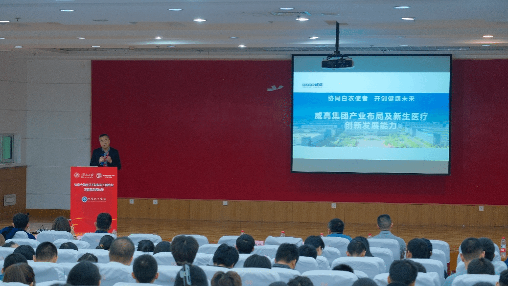 高分子材料专业87级校友、山东威高新生医疗器械有限公司副总经理吕汝举以“协同白衣使者、开创健康未来”主题,介绍了自己在威高集团工作、职业发展经历和威高新生医疗器械有限公司的创立过程,分享了威高集团的创新理念和高分子材料在其中的重要作用,讲述了自己带领研发团队突破富血小板血浆等关键技术的奋斗历程,让同学们认识到高分子材料在医疗卫生领域的广泛应用。