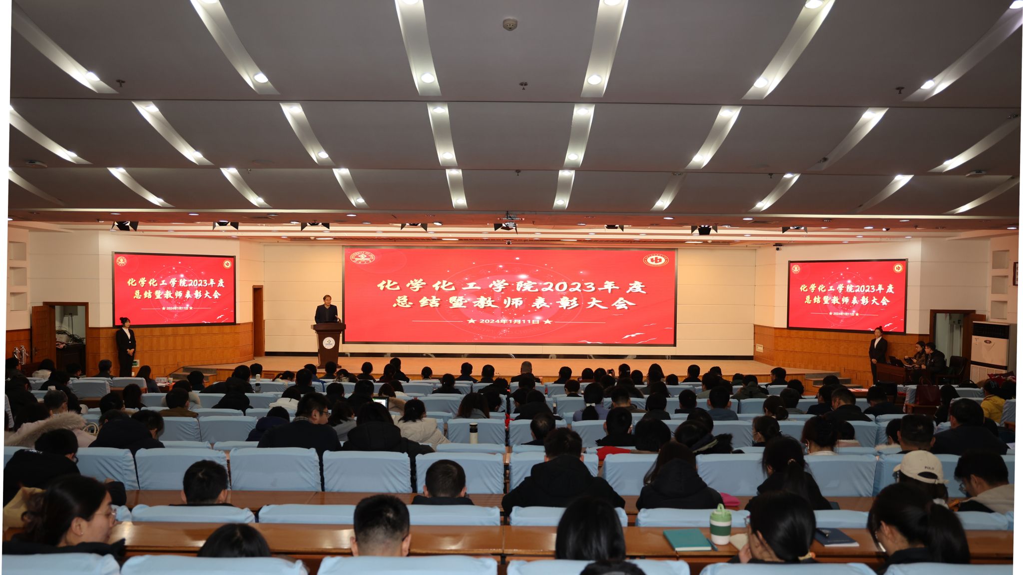 1月11日上午,milan米兰官网2023年度工作总结暨教师表彰大会在第一学术报告厅举行。milan米兰官网党委常委、副校长黄加栋,党委常委、宣传部部长贾海宁,党委学生工作部(处)、党委教师工作部、人力资源处、教务处、发展规划与学科建设处、科技处、党委研究生工作部、合作发展处、团委等职能部门负责人及学院全体教职工、学生代表参加会议。会议由milan米兰官网党委书记贺铭主持。