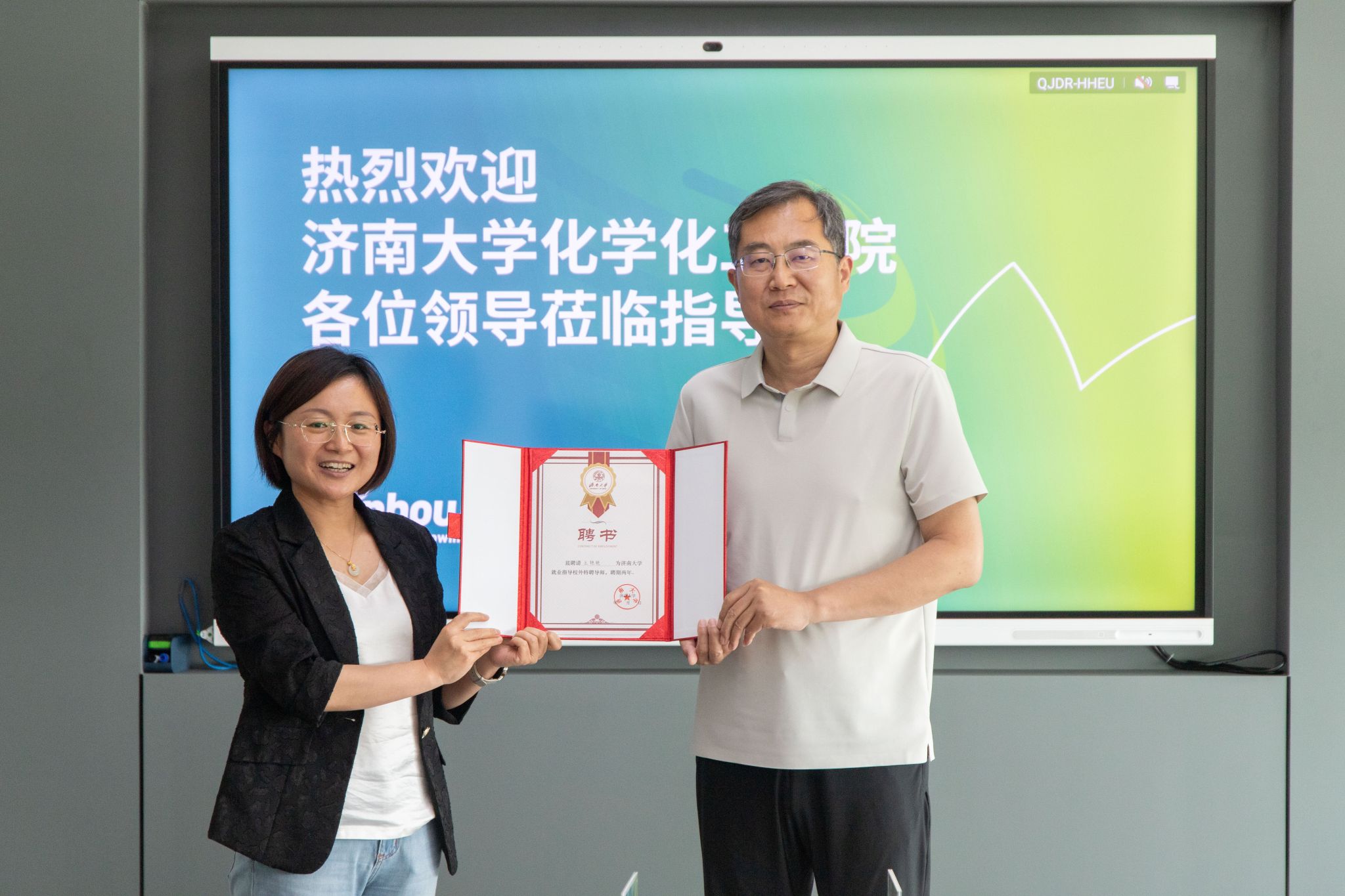 为促进校企资源对接,搭建人才共育平台,双方签署《milan米兰官网毕业生就业实习基地》协议并揭牌,贺铭为润丰化工股份有限公司招聘经理王艳艳颁发milan米兰官网“就业导师”聘书。