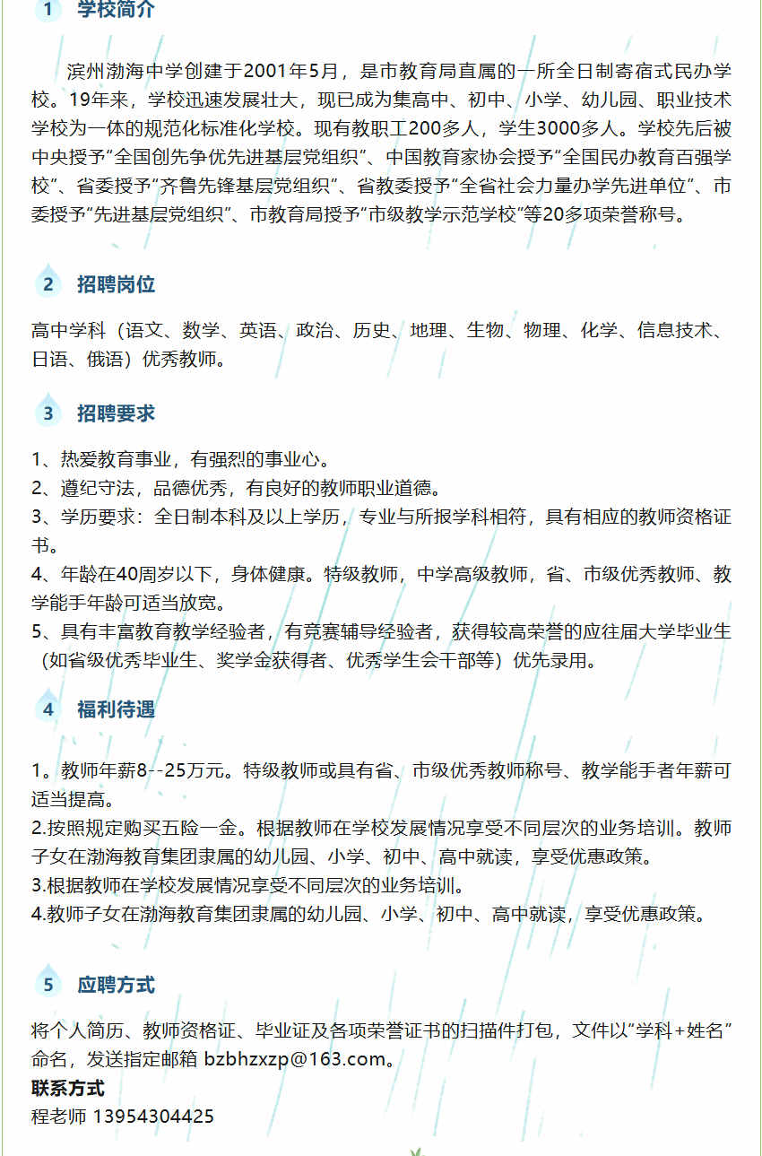 滨州渤海中学高中部校园招聘