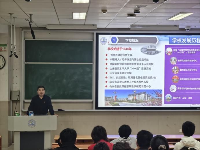 李村成以“学思想 强党性 重实践 建新功 争做科技创新先锋”为主题,从学校、学院概况及学科建设成效、全国及省内一流学科布局概况、学院大学生科技创新途径及长效成效三个方面来详细的讲述了当代大学生应具备创新精神,并提出了对入党积极分子的期望。